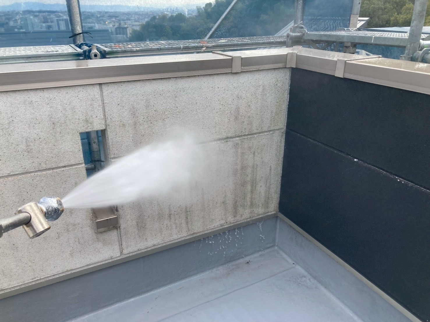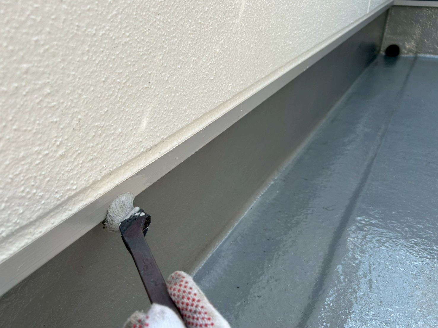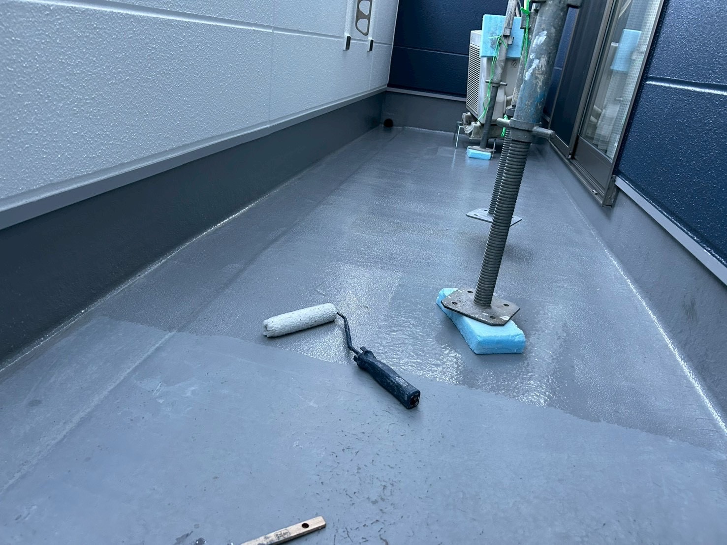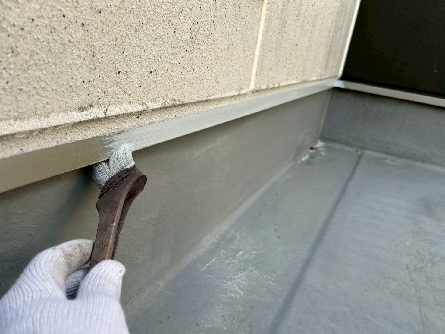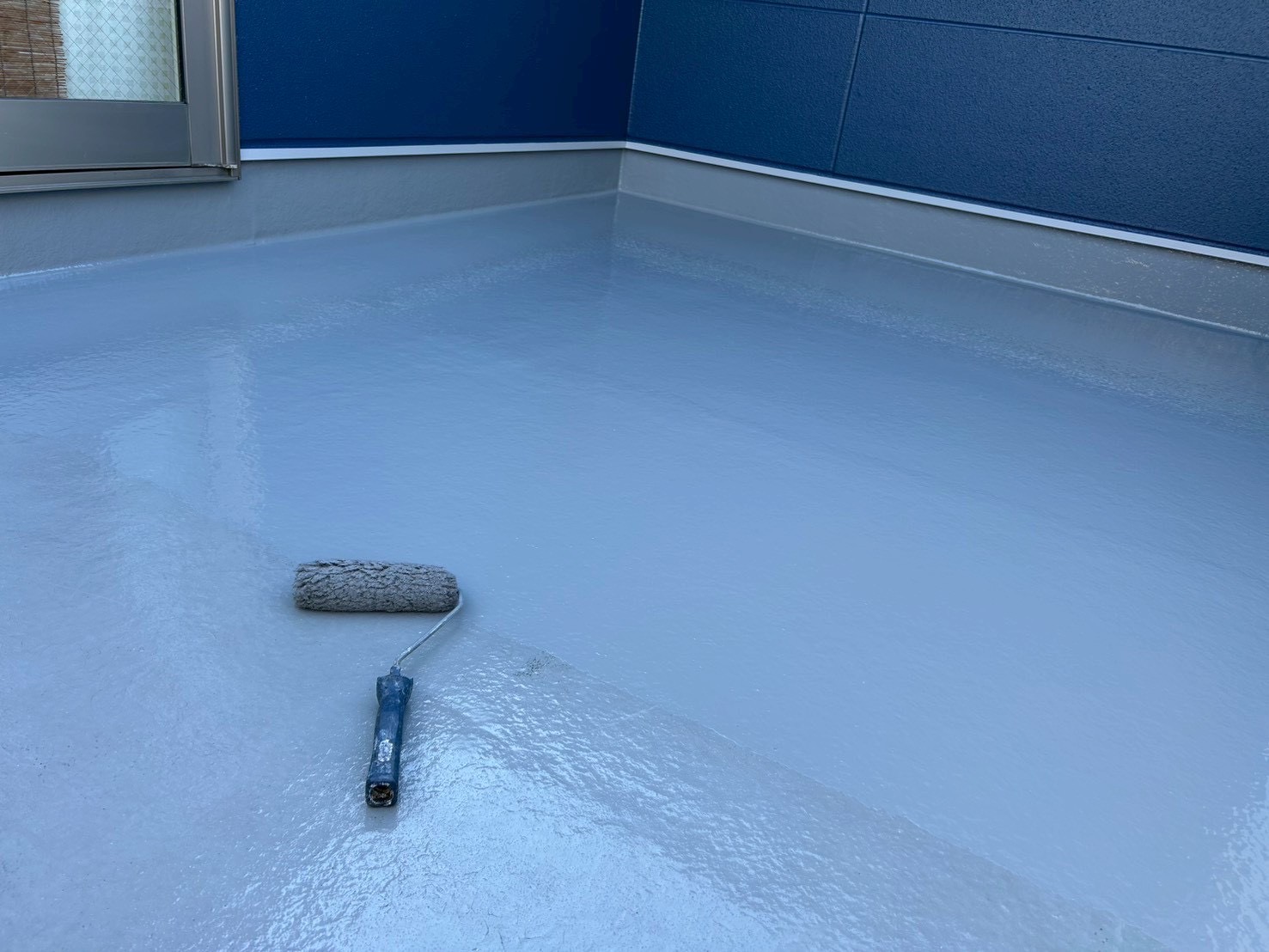 下地処理後、防水塗装を施工。